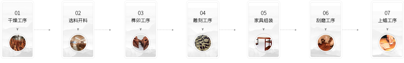 榫卯工序完成后,會(huì)進(jìn)入到雕刻紋飾的工序,可以說(shuō)紅木家具的全部工藝,雕刻工藝就占了一半以上。紅木家具中對(duì)手工雕刻的要求非常嚴(yán)格,在雕刻車間,每一名雕刻工在雕刻時(shí)都要集中精力,一旦刻錯(cuò)一刀,整張木板就很難修補(bǔ)了,這對(duì)紅木家具成品的質(zhì)量影響很大。紅木家具中木工工藝和雕刻工藝相結(jié)合,才能體現(xiàn)珠璧共輝、異曲同工的效果。